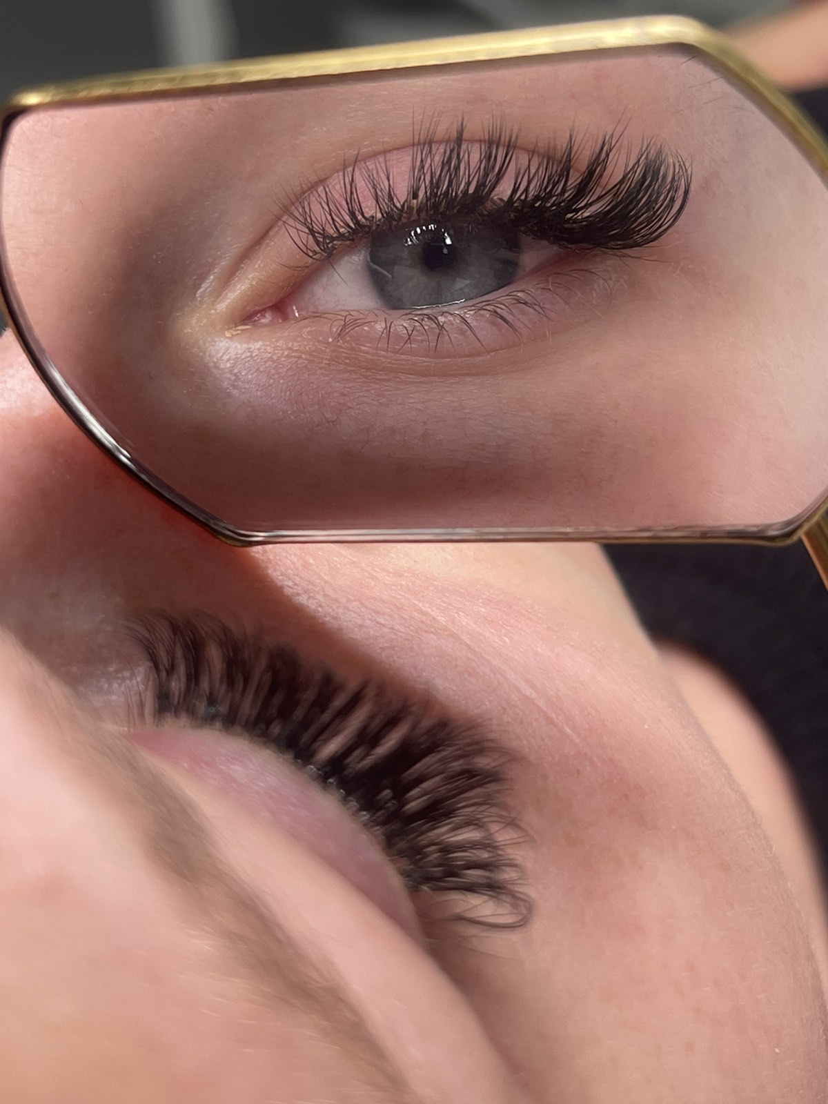 Ekstenzije trepavica prirodnom dlakom. Gustina i dužina po želji klijenta.